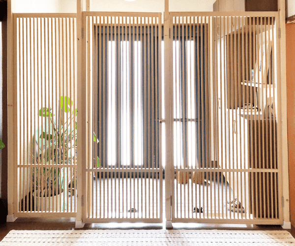 猫の脱走防止柵や入って来ては欲しくない部屋にピタッと取付けられるオシャレな防止扉です。